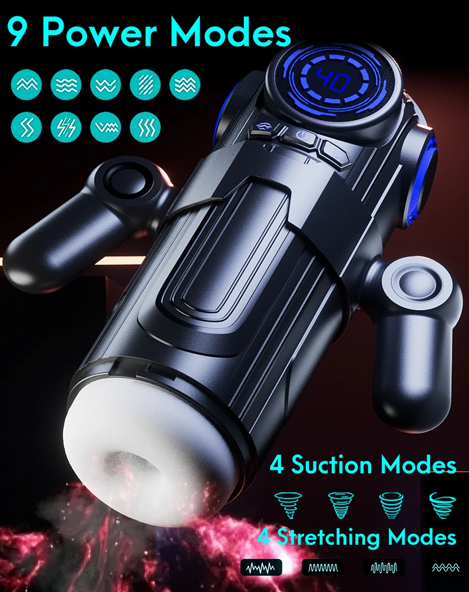 🔥9 Vibration & 4 Suction Thrusting Modes for Oral Pleasure Sex Toys:This male masturbator features 4 distinct suction settings that create a vacuum-like stimulation for the penis. With rhythmic inhaling and exhaling motions, it delivers a realistic oral sex sensation. Enjoy a variety of experiences through versatile operation, offering different levels of pleasure whether used as male penis vibrator or sucking masturbation cup