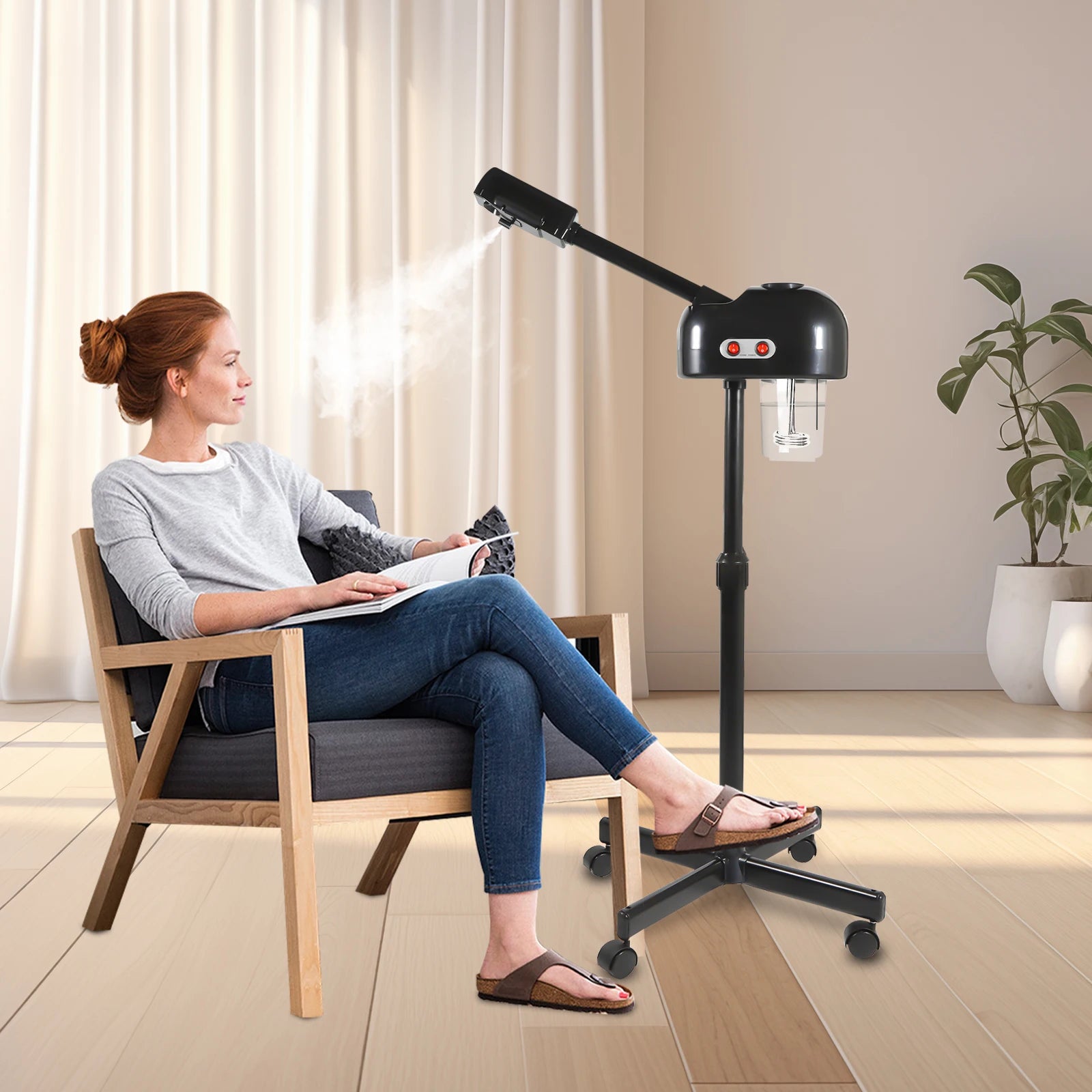 Telescopic Pole: The support frame of this facial steamer is designed to be retractable, which can meet the needs of people of different heights and different sitting positions. Compared with the facial steamer with a fixed support frame, this facial steamer of ours is designed more thoughtfully.